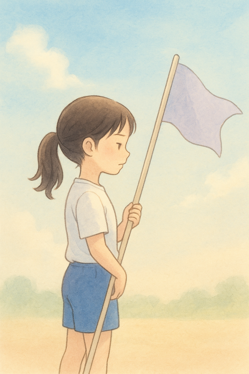 カラーガードの練習で少しずつつまづきながらも、一生懸命ついていこうとする姿を見てきたからこそ、胸がぎゅっとなった。
